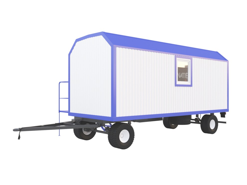 Универсальный блок-контейнер на шасси №2 длиной 6 м для частой передислокации. Трапециевидная кровля, тамбур на заднем торце, утепление базальтовой плитой 100 мм. Отделка ЛДСП/ПВХ, полукоммерческий линолеум. 3 конвектора по 1,5 кВт. Аренда от 11 500 ₽/мес, продажа от 310 000 ₽. Доставка по СПб, Москве и России за 24ч.