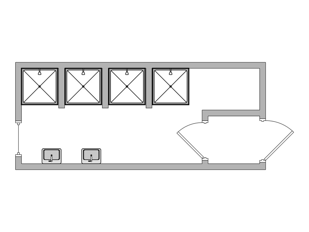 Высокая пропускная способность: 4 душевые кабинки и 2 умывальника обслуживают до 25 человек за смену