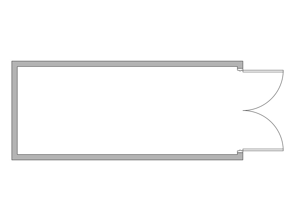 Базовая версия: ворота, стеллажи вдоль стен, минимальная электрика