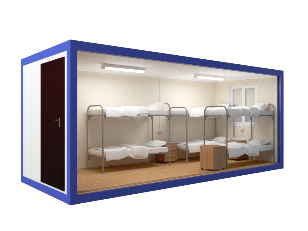 В 6-метровой версии площадью 14,4 м² комфортно размещаются 2 человека постоянно (дачный домик) или 4 человека временно (строительная бытовка). Для проживания 6 человек рекомендуем 9-метровую версию с разделением на две зоны. При использовании как склад — выдерживает оборудование и материалы до 300 кг/м².