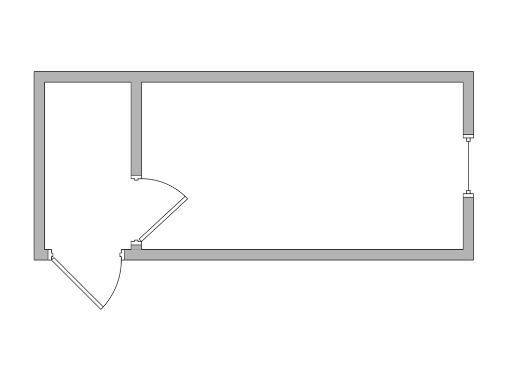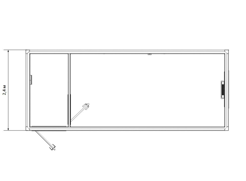 Тамбур занимает 3,0 м² (1,25х2,4 м) у боковой стены с входной дверью. Жилая зона — 11,4 м² (4,75х2,4 м) с окном в торце. Такая планировка позволяет использовать тамбур как раздевалку с вешалками на 8 человек или мини-кладовую для строительного инвентаря, а жилую зону — под офис на 3 рабочих места или спальню для 2 человек.