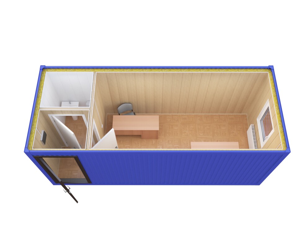 Стандартная прорабская бытовка не предусматривает установку санузла из-за отсутствия технологических отверстий под коммуникации. Рекомендуем заказать специализированный штаб с санузлом (модель №21) или разместить сантехнический блок рядом с прорабской бытовкой. Два модуля можно состыковать тамбуром — стоимость стыковки 45 000 ₽. Такое решение обеспечит полный комфорт для руководителя без потери функциональности рабочей зоны.