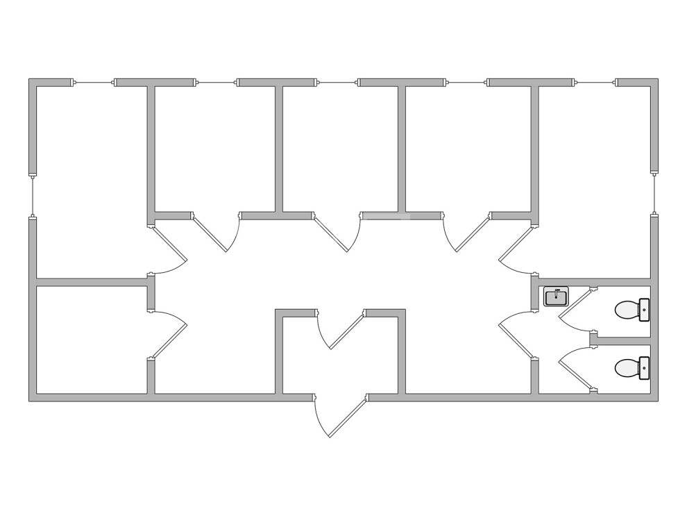 Шесть изолированных комнат площадью 8-10 м² каждая с межкомнатными дверями МДФ 2000х800 мм