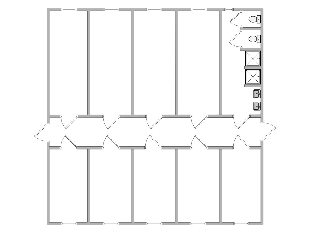 Полная санитарная автономия — два санблока с 4 душевыми кабинами, 4 унитазами и 4 умывальниками исключают очереди даже при одновременном использовании всеми жильцами
