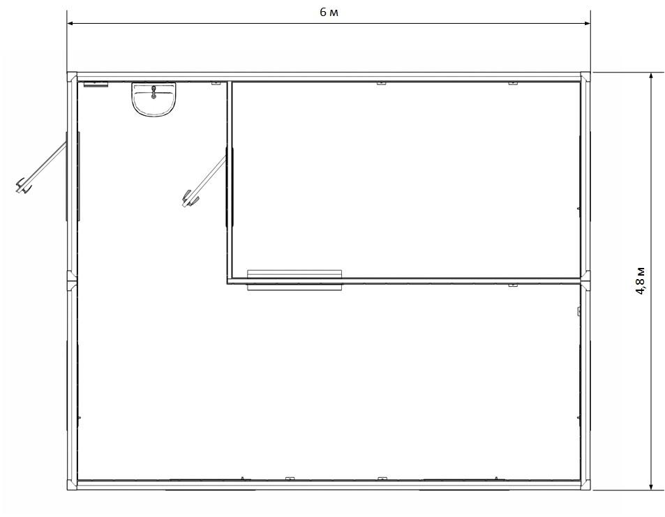 Два модуля длиной 6 м каждый, объединённые в единое пространство площадью 28,8 м²