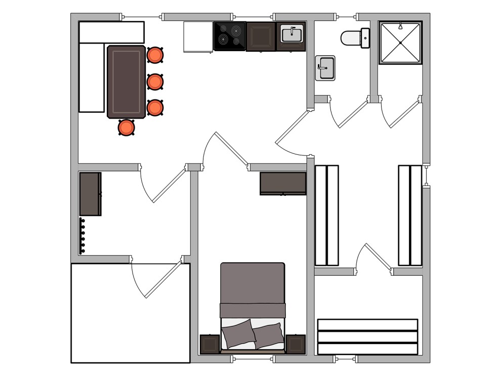 В доме комфортно проживают 3-4 человека на постоянной основе. Планировка предусматривает спальные места в жилой зоне, кухонный гарнитур, раздельный санузел и сауну для отдыха. Для семьи из 4 человек рекомендуем раскладной диван в жилой зоне (+35 000 ₽) и двухъярусную кровать в спальне (+42 000 ₽).