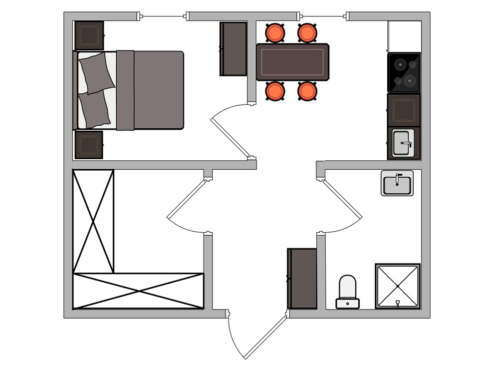 В базовой планировке комфортно проживают 2-3 человека. При переоборудовании хозяйственного помещения под детскую или гостевую комнату — до 4 человек (супружеская пара + двое детей или пара с одним ребёнком и периодическим гостем). Для четвёртого человека рекомендуем раскладное кресло-кровать (+25 000 ₽).