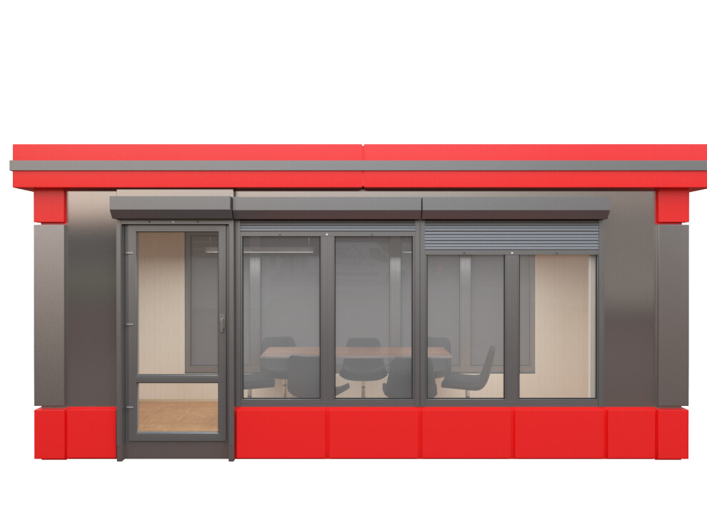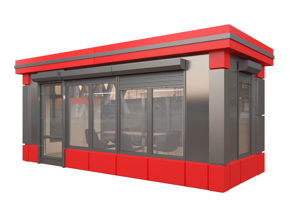 Офис продаж с декоративным карнизом — это премиальный павильон площадью 14,4 м² из сэндвич-панелей для организации торговых точек, салонов связи и представительств в условиях Санкт-Петербурга, Москвы и регионов России. Благодаря панорамному остеклению по трём сторонам, алюминиевым композитным панелям и декоративному карнизу вы получаете узнаваемый брендовый объект, привлекающий клиентов даже в пасмурную погоду.
