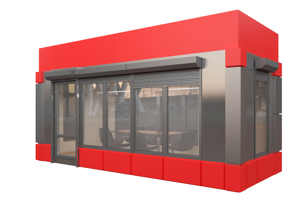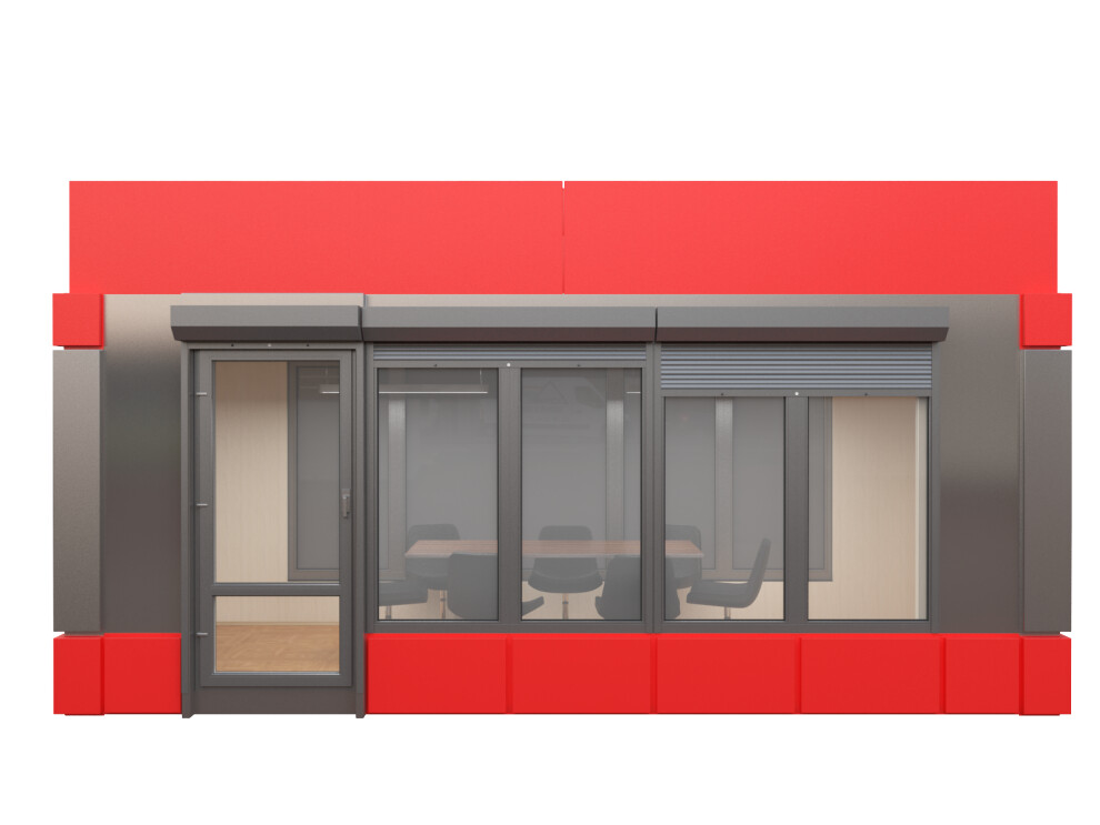 Офис продаж с панорамным остеклением — это премиальный павильон площадью 14,4 м² из сэндвич-панелей для организации торговых точек, салонов связи и представительств в условиях Санкт-Петербурга, Москвы и регионов России. Благодаря панорамному остеклению по трём сторонам, алюминиевым композитным панелям и защитным рольставням вы получаете узнаваемый брендовый объект, привлекающий клиентов даже в пасмурную погоду.