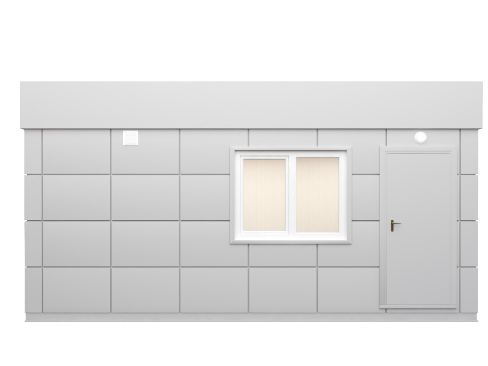Сэндвич-панели 80 мм на основе ПСБ-С обеспечивают комфортную температуру +18 градусов Цельсия внутри при -30 градусов Цельсия на улице при работе конвектора мощностью 2 кВт. Для регионов с температурой ниже -35 градусов Цельсия устанавливаем панели 100 мм — доплата 85 000 ₽.