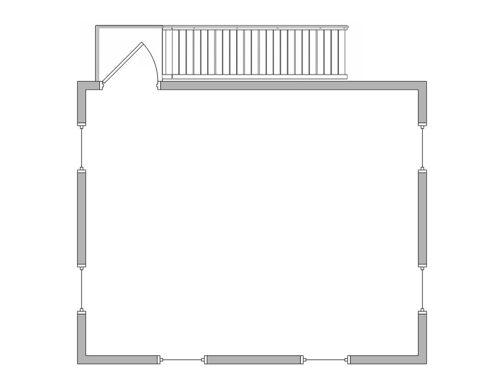 На первом этаже комфортно работают 2 охранника в проходной зоне. На втором этаже размещается 1 дежурный для отдыха между сменами. Для круглосуточной работы рекомендуем расчёт из 3 человек с графиком «сутки через двое». Максимальная нагрузка на межэтажное перекрытие — 400 кг/м².