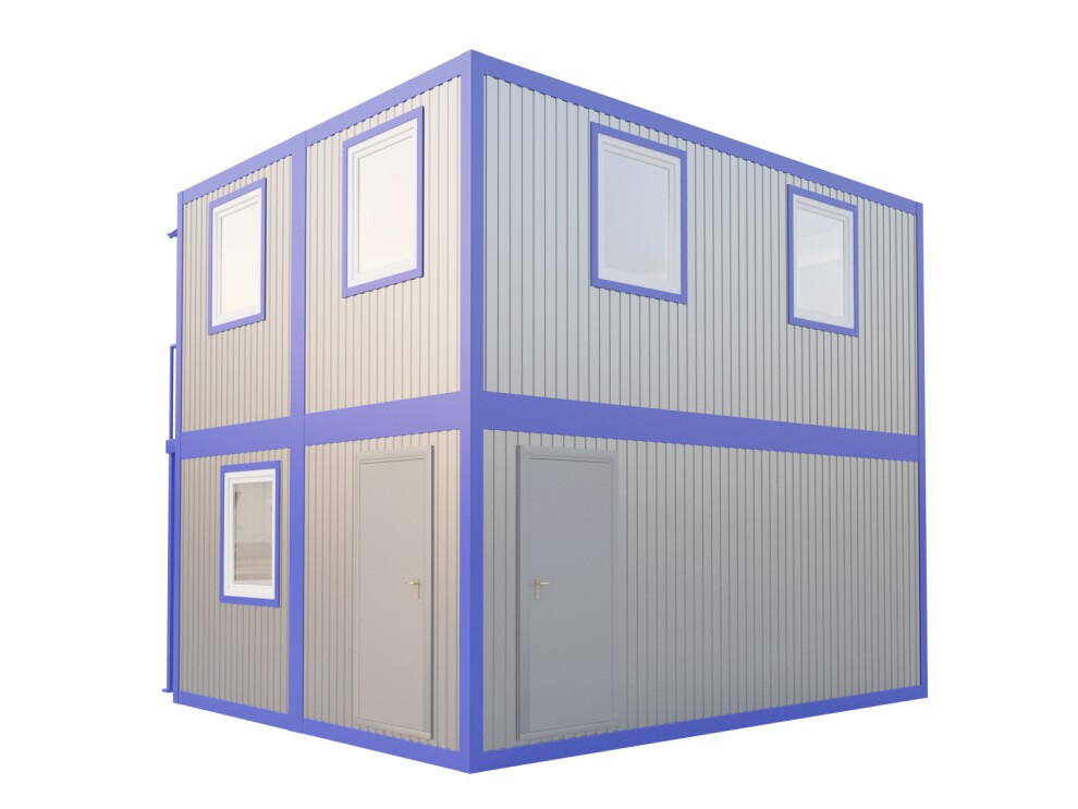 Монтаж 4 блоков занимает 18-22 часа силами бригады из 6 человек: выравнивание площадки, установка первого этажа (2 блока), монтаж межэтажных опор, установка второго этажа (2 блока), сварка стыков, монтаж лестницы. Подключение коммуникаций (220В, водоснабжение) — дополнительные 4 часа. Всю работу выполняем своими бригадами без субподрядчиков.