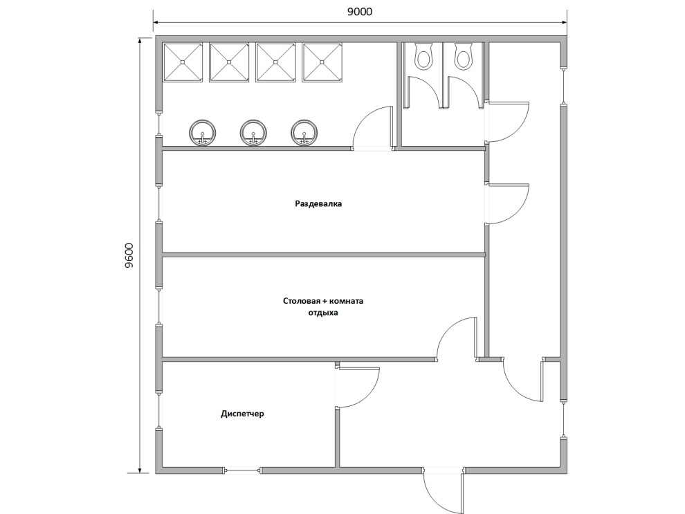 4 душевые кабины с эмалированными поддонами и 2 туалета «Компакт» обеспечивают соблюдение санитарных норм при круглосуточном дежурстве