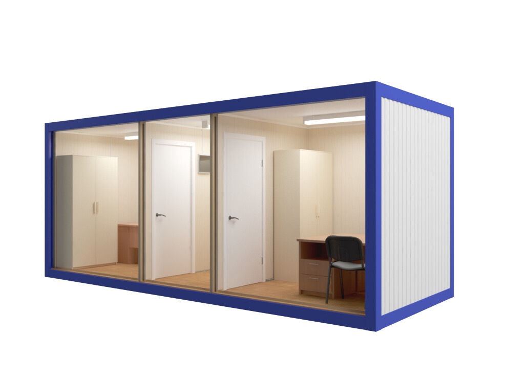 Стандартная прорабская бытовка не предусматривает установку санузла из-за отсутствия технологических отверстий под коммуникации. Рекомендуем заказать сантехнический блок (модель №11) рядом с прорабской бытовкой. Два модуля можно состыковать тамбуром — стоимость стыковки 3 000 ₽ при аренде. Санблок подключается к бытовке через единый кабель питания и водопроводную трубу. Аренда комплекта «прорабская бытовка + санблок» — от 22 000 ₽/мес с доставкой и установкой обоих модулей за один выезд.