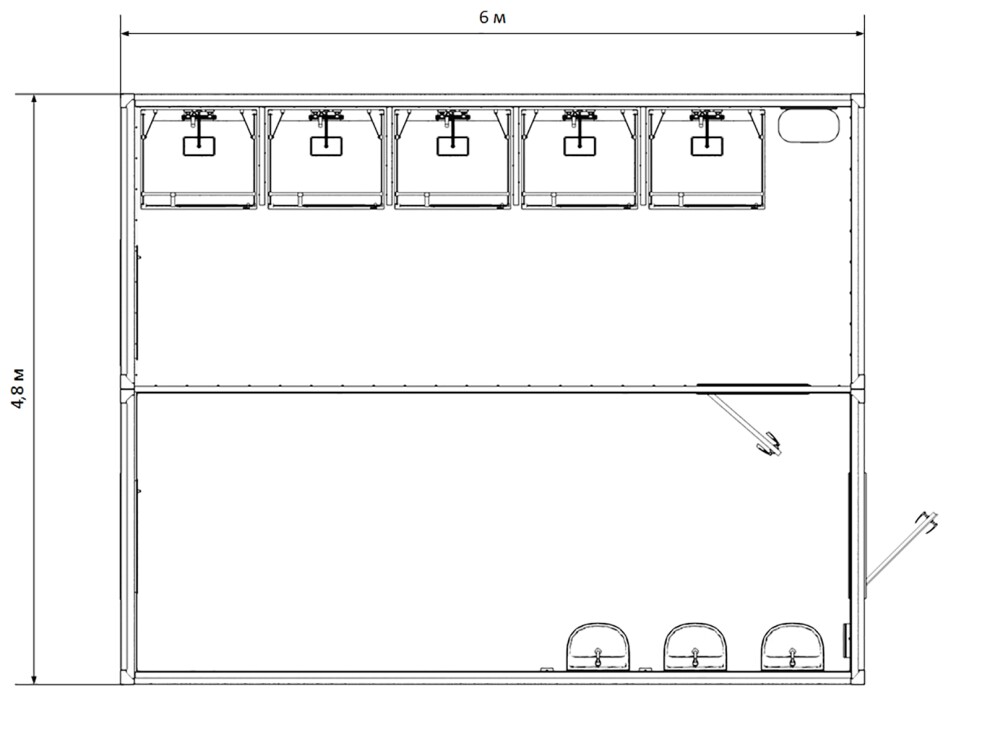 Габариты: длина 6 м, ширина 4,8 м, высота 2,4 м, общая площадь 28,8 м²