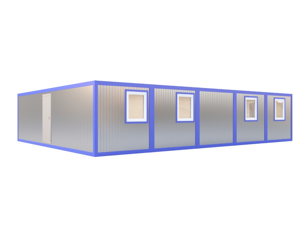 Штаб №25 12х9х2,4 м из 5 блоков по 9 м. Профлист С8, утепление 50 мм, 9 окон ПВХ. Аренда от 65 000 ₽/мес, продажа от 1 900 000 ₽. Доставка по СПб, Москве и России за 24ч.