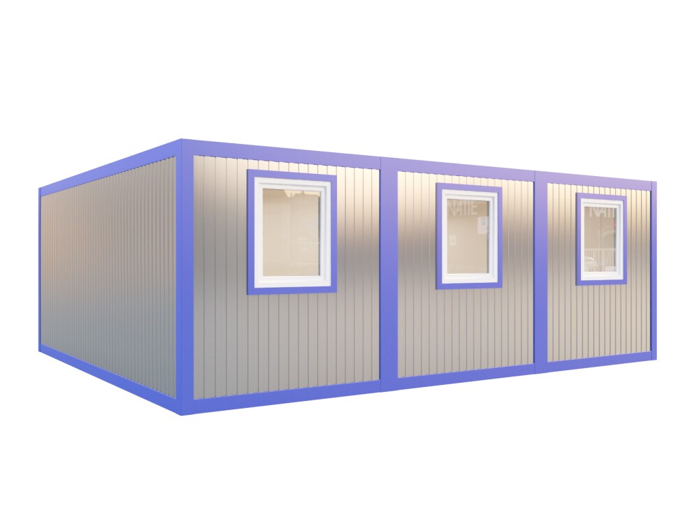 Штаб строительства 7,2х6х2,4 м из 3 блоков. Профлист С8, утепление 50 мм, 3 окна ПВХ, санузел. Аренда от 28 000 ₽/мес, продажа от 680 000 ₽. Доставка по СПб, Москве и России за 24ч.