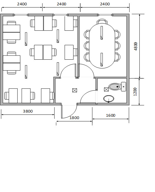 Общее помещение 21,6 м² для размещения 6-8 сотрудников или организации переговоров с подрядчиками