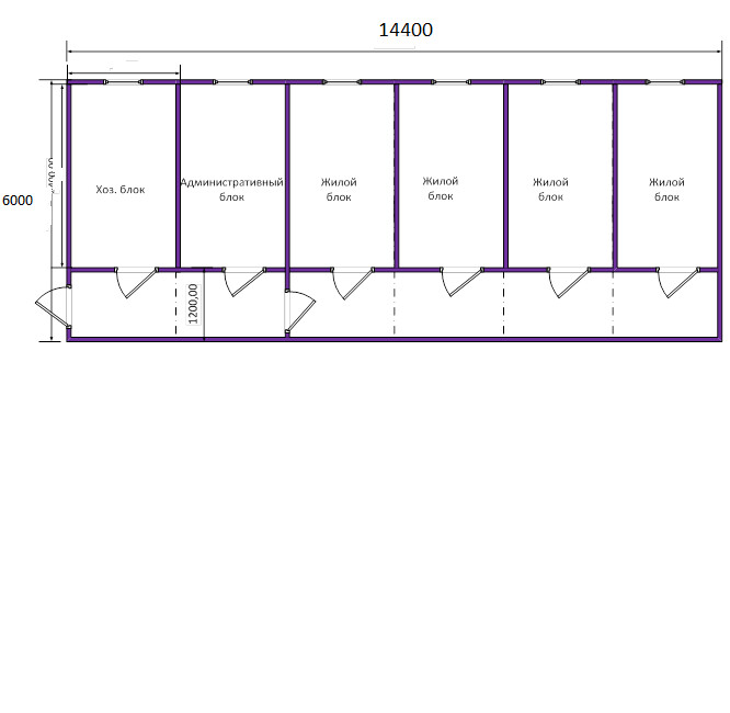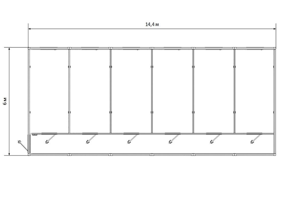 Габариты: длина 14,4 м, ширина 6 м, высота 2,4 м, общая площадь 86,4 м²